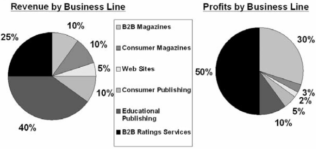 First, it looks like the educational publishing business brings in a significant amount of the revenue, but only 10% of the profits.
