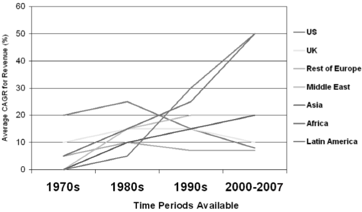 Candidate: Well, they also look similar to the relative growth rates for the GDPs of the countries in these regions for the last few decades. What I take from this in a nutshell is that the U.S., U.K. and European businesses are no longer growing nearly as fast as the businesses in developing parts of the world, like Latin America, Asia, Africa and the Middle East.