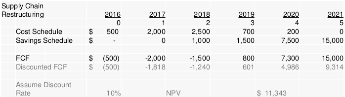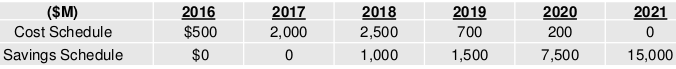 Note: All effects of depreciation and change in net working capital are included in the costs and savings schedule.