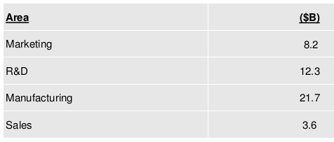 | R&D | 12.3 | Unlikely: Marketing and R&D are necessary for innovation. It is difficult to find top talent in developing countries. Also, the client has a large North America based business. |