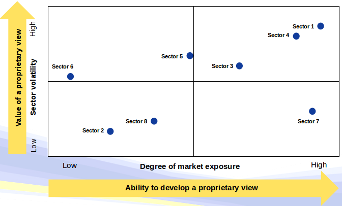 * Exhibit 2: this is one way to prioritize the sectors (the candidate may have recommended an alternative approach). The insight is that the client should focus their efforts on the top right quadrant (see Exhibit 2, for interviewer only)