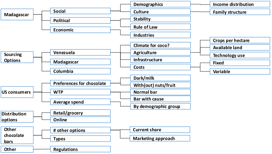 Two entrepreneurs have just launched a non-profit chocolate bar manufacturing company called Madecasse Inc. The goal of Madecasse is to improve conditions for people in Madagascar by selling chocolate bars to consumers in the United States. Our consulting firm is working with Madecasse on a pro bono basis to determine: (1) where to source raw materials cocoa beans (Venezuela, Madagascar, Columbia) (2) how to market the chocolate bars in the United States.