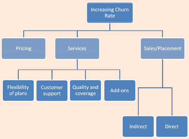 Ask the interviewee to come up with potential sources of increase in customer churn ratio. Let him/her brain storm on the possible high level “pain areas”.