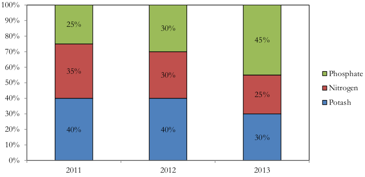 * Gross margins: Potash: $250/tonne, Nitrogen: $150/tonne and Phosphate:$100/tonne