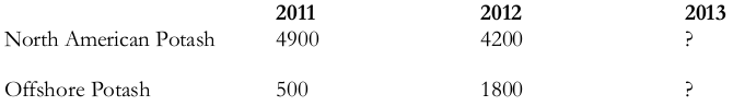 * Offshore potash is projected to grow 50% from 2012 to 2013.