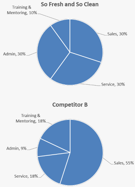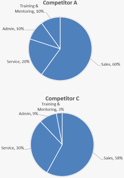 Once the candidate identifies competitors spend 2x the amount of time selling, then the candidate needs to brainstorm specific ways to increase this percentage.