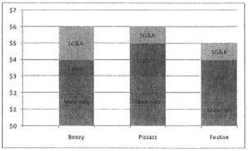 Interviewer: Instruct the candidates to recalculate or speak to changes in the income statement given a product mix change. Higher performing candidates should address the reality that over the long term, commodity prices converge to costs, so Boozy Co. must lower costs to compete.